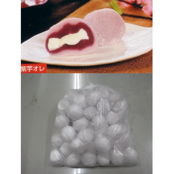 | 素材 | 【原材料】 餅粉、うるち粉、砂糖、紫芋餡、澱粉、粉末紫芋、乳製品 食用植物油脂(一部大豆使用)、乳化剤、香料、安定剤 【賞味期限】 冷凍状態で、1ヶ月 解凍後、3日 |